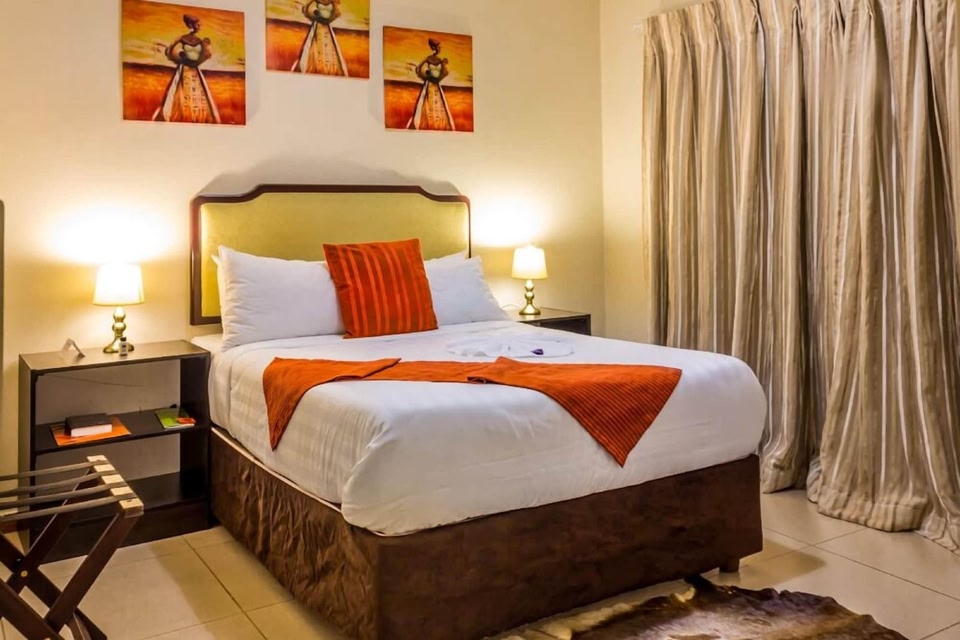 Hill View Inn in Serowe liegt am Stadtrand, eine 10-minütige Fahrt von Khama III Memorial Museum und Royal Cemetery entfernt. Dieses Hotel ist 8,2 km von Serowe Stadium und 29,9 km von Lipscombe Monument entfernt. Genieße die den schönen Ausblick von folgenden Punkten: Terrasse und Garten. Außerdem kannst du kostenloses WLAN nutzen. Genieße Mittagessen oder Abendessen bei einem Restaurant dieses Hotels. Oder bleib gemütlich auf deinem Zimmer und nutz den Zimmerservice. Gegen Gebühr wird täglich von 07:00 Uhr bis 10:00 Uhr ein englisches Frühstück angeboten. Die Rezeption ist nur zu bestimmten Zeiten besetzt. Vor Ort gibt es Folgendes: Parken ohne Service (kostenlos). Fühl dich in einem der 10 klimatisierten Zimmer wie zu Hause. Ein WLAN-Internetzugang (kostenlos) ist ebenso verfügbar wie Satellitenempfang. Es sind eigene Badezimmer mit Badewannen und Duschen (separat) vorhanden, die Komfortbadewannen und kostenlose Toilettenartikel bieten. Zur Austattung gehören Schreibtische und Wasserkocher mit Kaffee-/Teezubehör; die Zimmer werden täglich sauber gemacht.