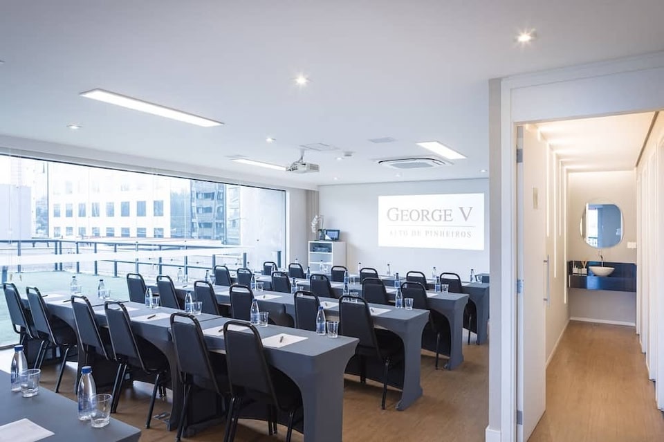 In São Paulo (Pinheiros) gelegen, ist George V Alto De Pinheiros nur eine 5-minütige Fahrt von Beco do Batman und Villa-Lobos Park entfernt. Dieses Hotel im luxuriösen Stil ist 3,4 km von Rua Oscar Freire (Einkaufsstraße) und 4,8 km von Paulista Avenue entfernt. Du solltest keine der folgenden Einrichtungen verpassen: Außenpool, Sauna und Fitnessmöglichkeiten. Ein Frühstücksbuffet wird unter der Woche von 06:30 Uhr bis 10:00 Uhr und am Wochenende von 07:00 Uhr bis 10:30 Uhr gegen Gebühr angeboten. Zum Angebot gehören ein rund um die Uhr geöffnetes Businesscenter, kostenlose Zeitungen in der Lobby und ein Textilreinigungsservice. Für Veranstaltungen stehen folgende Einrichtungen zur Verfügung: ein Konferenzzentrum und 2 Tagungsräume. Vor Ort gibt es Folgendes: Parkservice (kostenlos). Fühl dich in einem der 63 Zimmer, die Kochnischen bieten, die über Kühlschränke und Herdplatte verfügen, wie zu Hause. Ein WLAN-Internetzugang (kostenlos) ist ebenso verfügbar wie Kabelempfang. Die Badezimmer mit Badewannen und Duschen (separat) verfügen über Komfortbadewannen und kostenlose Toilettenartikel. Zur Austattung gehören Safes und Mikrowellen; die Zimmer werden täglich sauber gemacht.