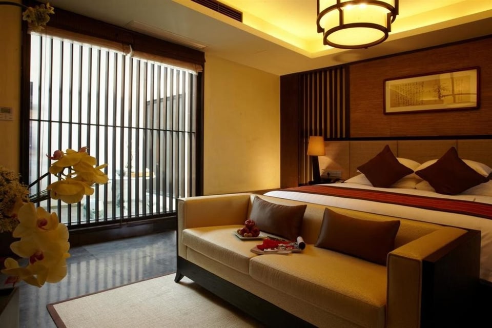 The Dayu Kaiyuan is located at the foot of Mount Kuaiji, only a 15-minute drive from Shaoxing Railway Station. This Shaoxing hotel houses 95 rooms, suites and villas, ranging in size from 40 (430) to 280 sq m (3,014 sq ft). Each room is uniquely structured. All rooms are furnished with air conditioning, digital TVs, Wi-Fi access and Chinese-style furniture. Most accommodation units open to private or semi-private courtyards with outdoor dining and lounge. There are more than 400 seats and 9 luxurious dining rooms at hotel, catering to various dining requests. 9 different sized dining rooms have nice Ji-pavilion views, providing guests a wide array of Chinese-style delicacies including Cantonese cuisines. For entertainment and relaxation, the hotel has a teahouse, Spa Village, chess/poker room and ancient-style performance stage on offer.