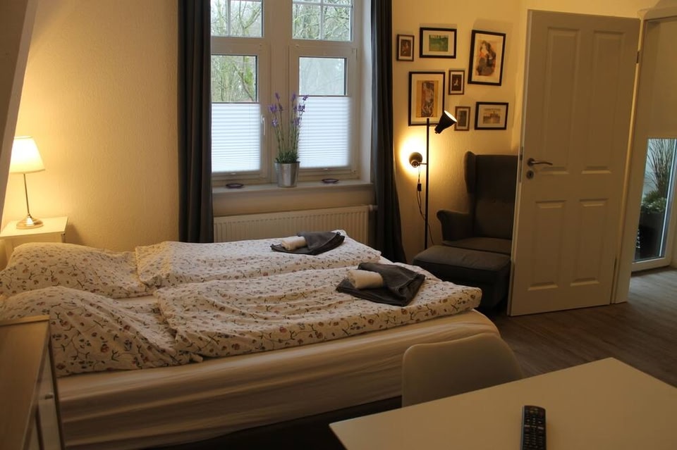 Apartment am Wall in Emden ist nur einen 3-minütigen Fußmarsch von Klinikum Emden - Hans-Susemihl-Krankenhaus und 11 Gehminuten von Kunsthalle Emden entfernt. Dieses Apartment ist 1,7 km von Bunkermuseum und 1,8 km von Ostfriesisches Landesmuseum entfernt. Fühl dich in einem der 6 Zimmer, die Kochnischen bieten, die über Kühlschränke und Herdplatte verfügen, wie zu Hause. 32 Zoll groáe Flachbildfernseher mit Satellitenempfang sorgen fr gute Unterhaltung; auáerdem steht ein WLAN-Internetzugang (kostenlos) zur Verfgung.