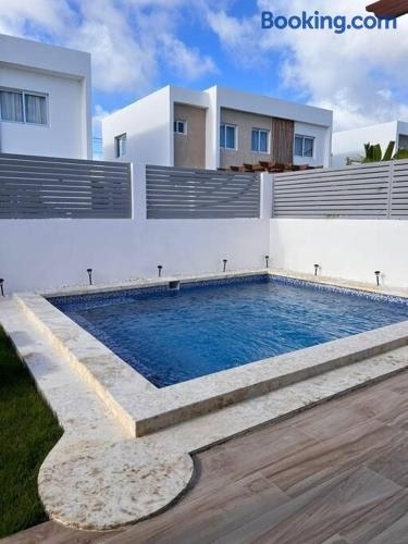 Die Unterkunft Eco-Friendly Tropical villa 3br 2b with private Pool & Grill, die über einen Außenpool, einen Garten und eine Terrasse verfügt, bietet Übernachtungsmöglichkeiten in Punta Cana mit kostenlosem WLAN und Poolblick.