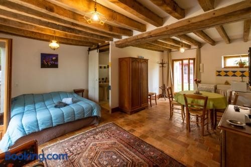 Die Unterkunft Studio campagne verfügt über Gartenblick und Übernachtungsmöglichkeiten mit einer Terrasse und einer Kaffeemaschine, ungefähr 32 km von Rennstrecke von Le Mans entfernt.