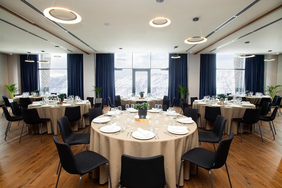 Gudauri Lodge liegt in Qasbegi und ist eine 1-minütige Fahrt von Skigebiet Kobi und eine 9-minütige Fahrt von Church of St. George entfernt. Dieses Hotel direktem Zugang zum Skigebiet ist 10,7 km von Sadzele Peak und 34,8 km von Stephantsminda Museum of History entfernt. Entspann dich im Wellnessbereich, der Massagen, Körperbehandlungen und Gesichtsbehandlungen bietet. Sicher wirst du den direkten Pistenzugang zu schätzen wissen, den dieses Hotel ebenso bietet wie folgende Freizeiteinrichtungen: Innenpool und Sauna. Zu den Highlights, die dieses Hotel bietet, gehören zudem kostenloses WLAN, ein Skiraum und ein Souvenirladen/Kiosk. Gudauri Lodge bietet seinen Gästen ein Restaurant mit hervorragender Küche. Alternativ gibt es eine Snackbar. Deinen Durst kannst du an der Bar/Lounge stillen. Ein inbegriffenes Frühstücksbuffet wird täglich von 09:00 Uhr bis 11:00 Uhr angeboten. Zum Angebot gehören eine rund um die Uhr besetzte Rezeption, mehrsprachiges Personal und eine Gepäckaufbewahrung. Wenn du eine Veranstaltung in Qasbegi planst, ist dieses Hotel eine gute Wahl, denn zu den 2347 Quadratfuß (218 Quadratmeter) großen Veranstaltungsräumlichkeiten zählen Konferenzfläche und ein Tagungsraum. Vor Ort gibt es Folgendes: Parken ohne Service (kostenlos). Fühl dich in einem der 121 Zimmer, die Minibar bieten, wie zu Hause. Ein WLAN-Internetzugang (kostenlos) steht zur Verfügung. Es gibt eigene Badezimmer mit Duschen, die über Regenduschen und kostenlose Toilettenartikel verfügen. Zur Austattung gehören Telefone ebenso wie Safes und Schreibtische.