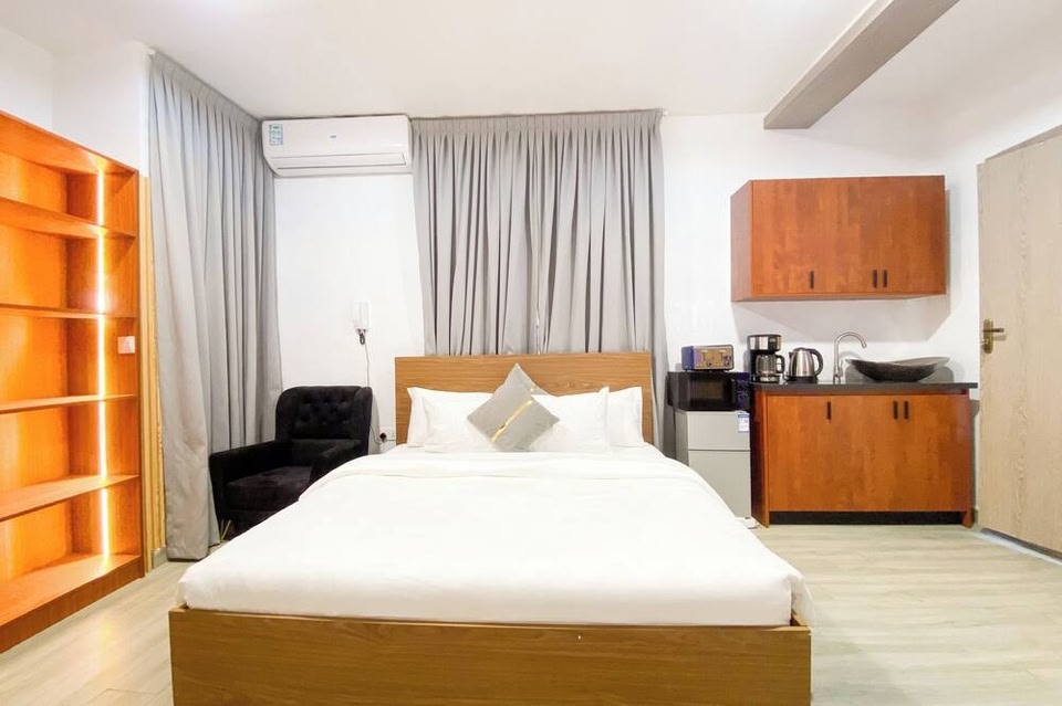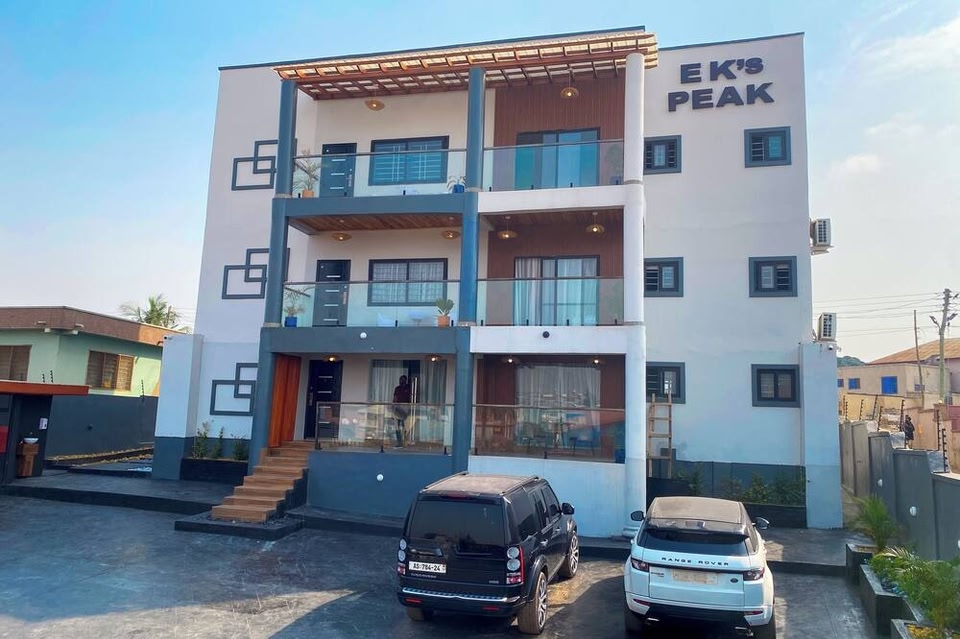 EKS PEAK in Kumasi lockt mit einem Aufenthalt, der nur 5 Autominuten von Manhyia Palace und Markt Kejetia entfernt ist. Dieses Apartment ist 4,3 km von Saint Peter's Cathedral Basilica und 5,4 km von Baba-Yara-Stadion entfernt. Freu dich in deiner Freizeit auf: Außenpool und kostenloses WLAN. Vor Ort gibt es Folgendes: Parken ohne Service (kostenlos). Fühl dich in einem der 16 Zimmer, die Kochnischen bieten, wie zu Hause. Die Zimmer haben eigene Balkone. WLAN-Internetzugang (kostenlos) und Flachbildfernseher sorgen für Unterhaltung. Zu den Highlights gehören Schreibtische und Wasserkocher.
