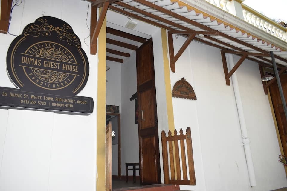 In bester Lage gelegen in Puducherry, bietet die Unterkunft Dumas Guest House klimatisierte Zimmer mit einem Garten, einem eigenen Strandbereich und kostenlosem WLAN.
