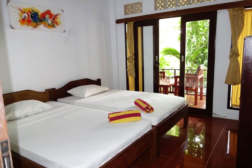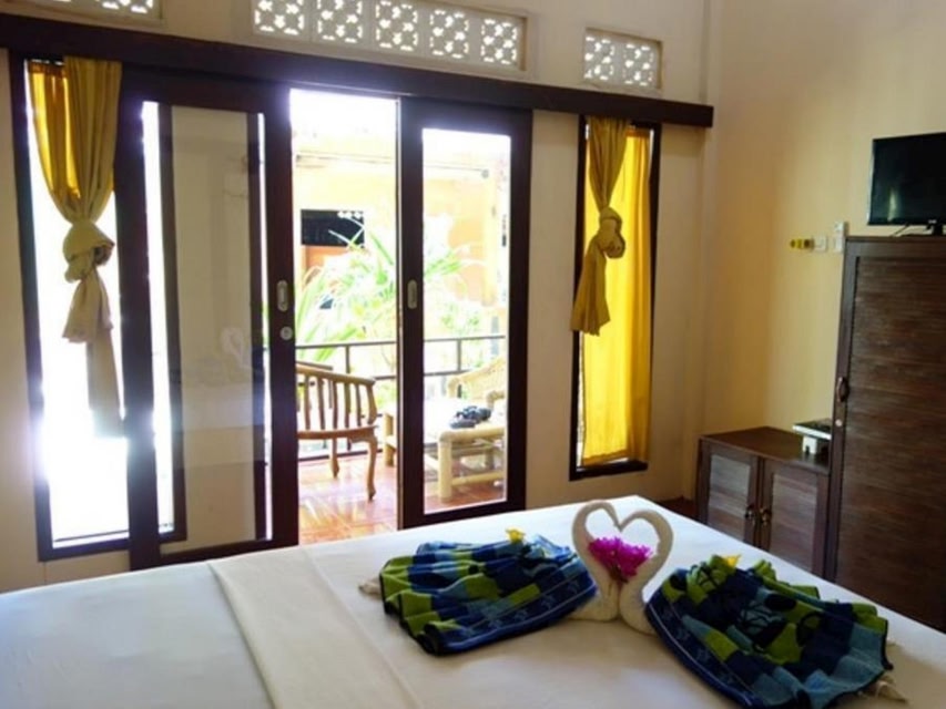 Die Unterkunft Banana Leaf Bungalow, die in Gili Trawangan gelegen ist, bietet Übernachtungsmöglichkeiten direkt am Strand, 300 m von Südöstlicher Strand entfernt. Sie bietet verschiedene Einrichtungen, wie einen Garten, eine Terrasse und eine Bar. 2009 erbaut, liegt diese Unterkunft ungefähr 300 m von Hafen von Gili Trawangan und 1,9 km von Sunset Point entfernt. Die Unterkunft bietet eine Abendunterhaltung und einen Zimmerservice. Es gibt ein eigenes Badezimmer mit einer Dusche und kostenlosen Pflegeprodukten – Zimmer bieten den Gästen in der Unterkunft Banana Leaf Bungalow außerdem kostenloses WLAN und ausgewählte Zimmer sind zusätzlich versehen mit einem Balkon. Die Wohneinheiten in der Unterkunft Banana Leaf Bungalow verfügen über Klimaanlage und einen Schreibtisch. Die Gegend ist beliebt zum Wandern und Fahrradfahren. Ein Fahrradverleih ist in der Unterkunft Banana Leaf Bungalow verfügbar.