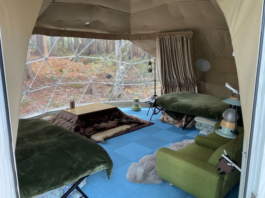 A campsite in a quiet forest There are many trees that are over 80 years old Forget the hustle and bustle of the city and relax The dome tent has a private sauna Smoking is prohibited in dome tents and cottages There is an ashtray outside so please use it Firewood is available for sale It is 500 yen per bundle The firewood is big so you need to split it with a hatchet If you are not interested in chopping firewood please come after purchasing small pieces of firewood We do n
