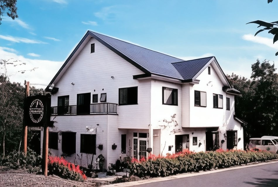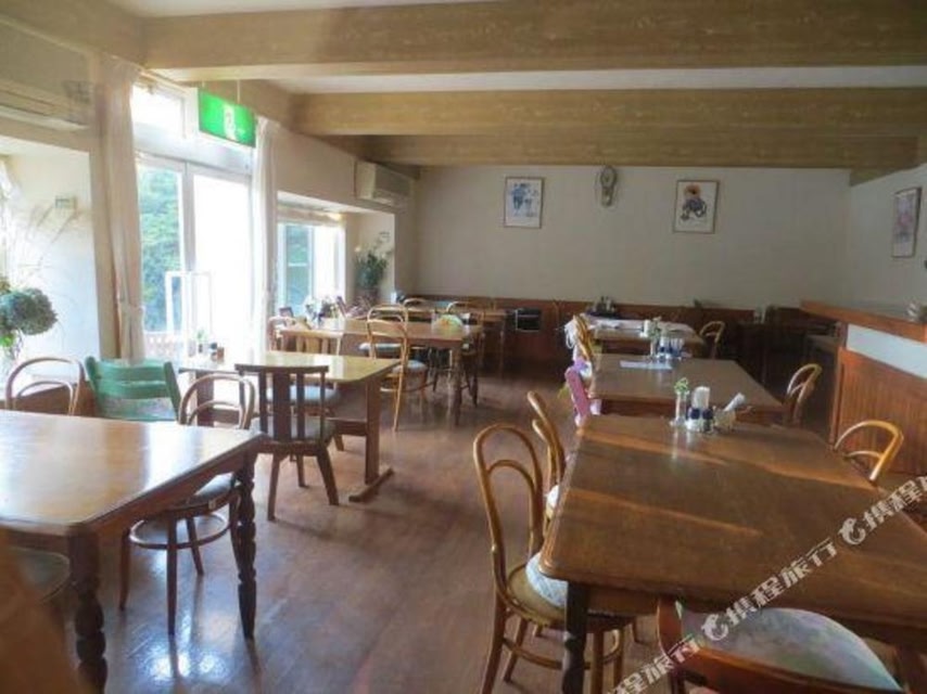 This travel inn is a pension with a warm, open-air bath.