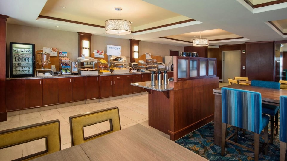 Holiday Inn Express & Suites Sherwood Park-Edmonton Area by IHG in Sherwood Park liegt im Geschäftsviertel, nur eine 5-minütige Fahrt von Millennium Place und Strathcona Science Provincial Park entfernt. Dieses Hotel mit Öko-Zertifizierung ist 5 km von Rundle Park und 5,5 km von Skigebiet Sunridge entfernt. Für deine Freizeit steht Folgendes zur Verfügung: Fitnessmöglichkeiten, kostenloses WLAN und ein Kamin in der Lobby. Zu den Highlights gehören auch ein Bankettsaal und ein Verkaufsautomat. Ein inbegriffenes Frühstücksbuffet wird unter der Woche von 06:30 Uhr bis 09:30 Uhr und am Wochenende von 07:00 Uhr bis 10:00 Uhr angeboten. Zum Angebot gehören ein kostenloser Internetzugang per Kabel, ein Businesscenter und ein Express-Check-out. Vor Ort gibt es Folgendes: Parken ohne Service (kostenlos). Fühl dich in einem der 90 Zimmer, die Kühlschrank und Mikrowelle bieten, wie zu Hause. Es gibt einen kostenfreien Internetzugang per Kabel und WLAN sowie Kabelempfang. Es sind eigene Badezimmer mit Duschwannen vorhanden, die über kostenlose Toilettenartikel und Haartrockner verfügen. Zur Austattung gehören Schreibtische und kostenlose Zeitungen sowie Telefone, mit denen du kostenlose Ortsgespräche führen kannst.
