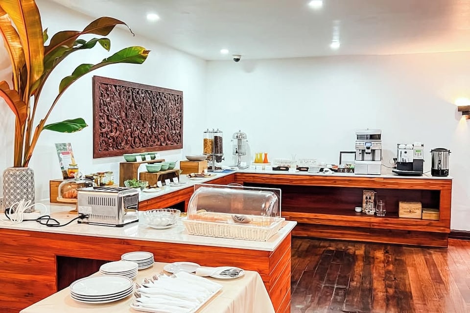 Le Charme Vientiane Hotel liegt im Herzen von Vientiane, nur wenige Schritte von Wat Ong Teu und 5 Gehminuten von Xieng Khuan entfernt. Dieses Hotel ist 19,5 km von Thai-Lao-Freundschaftsbrücke und 0,9 km von Nationalmuseum von Laos entfernt. Nutz das große Angebot an Freizeiteinrichtungen, wie zum Beispiel: Außenpool und Fitnessmöglichkeiten. Kostenloses WLAN, ein Concierge-Service und ein Friseursalon stehen ebenfalls zur Verfügung. Lass deinen Tag bei einem Drink an der Bar/Lounge ausklingen. Gegen Gebühr wird täglich von 06:30 Uhr bis 10:00 Uhr ein Frühstücksbuffet angeboten. Zum Angebot gehören ein kostenloser Internetzugang per Kabel, ein rund um die Uhr geöffnetes Businesscenter und ein Express-Check-in. Vor Ort gibt es Folgendes: begrenzte Parkplätze. Fühl dich in den 44 Zimmern, die individuell eingerichtet sind und Minibar und einen Smart-TV bieten, wie zu Hause. Es gibt einen kostenfreien Internetzugang per Kabel und WLAN sowie Satellitenempfang. Die Badezimmer bieten Haartrockner und Bademäntel. Zur Austattung gehören Telefone ebenso wie Safes und Wasserkocher.