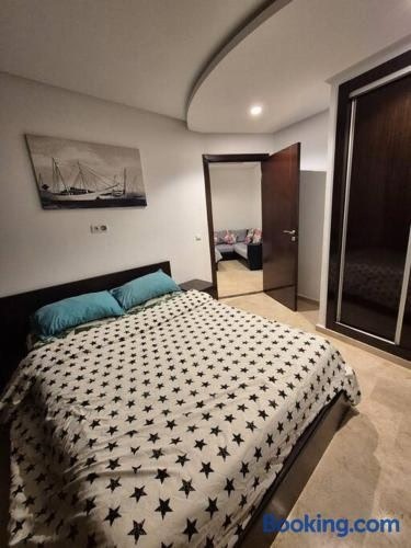 Gelegen im Bezirk Sidi Belyout in Casablanca, verfügt die Unterkunft Charmant Studio - Vue sur mer über eine Klimaanlage, einen Balkon und Meerblick. Strand Plage Lalla Meryem und Hassan-II.