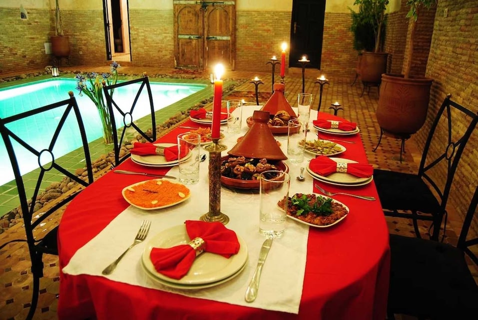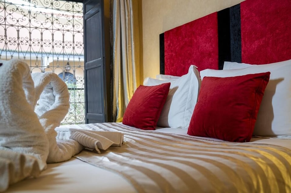 Riad Romance in Marrakesch (Medina) ist nur 10 Minuten Fahrt entfernt von: Djemaa el Fna und Koutoubia-Moschee. Dieser Riad für Familien ist 4,5 km von Majorelle-Garten und 4,7 km von Avenue Mohamed VI entfernt. Nutz folgende Freizeiteinrichtung: Außenpool. Du kannst aber auch den schönen Ausblick von folgendem Punkt genießen: Dachterrasse. Dieser Riad bietet auch kostenloses WLAN, ein Concierge-Service und Babysitting (gegen Gebühr). Viel Spaß ist dank des Shuttles zum Themenpark (gegen Gebühr) garantiert. Es wird täglich ein kostenloser Empfang angeboten. Ein inbegriffenes kontinentales Frühstück wird täglich von 08:00 Uhr bis 10:00 Uhr angeboten. Zum Angebot gehören eine rund um die Uhr besetzte Rezeption, eine Gepäckaufbewahrung und eine Bibliothek. Gegen Aufpreis kannst du den Transferservice vom Flughafen zum Hotel (rund um die Uhr) und den Abholservice vom Bahnhof nutzen. Fühl dich in einem der 7 Zimmer wie zu Hause. Ein WLAN-Internetzugang (kostenlos) steht zur Verfügung. Die Badezimmer bieten Duschen und Haartrockner. Zur Austattung gehören Safes und Massagen im Zimmer; die Zimmer werden täglich sauber gemacht. License number: 40000MH0590