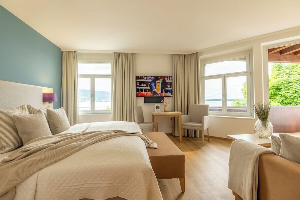Mit Blick auf den Strand bietet die Unterkunft Seehotel am Kaiserstrand mit 4 Sternen Übernachtungsmöglichkeiten in Lochau und bietet eine Terrasse, ein Restaurant und eine Bar.