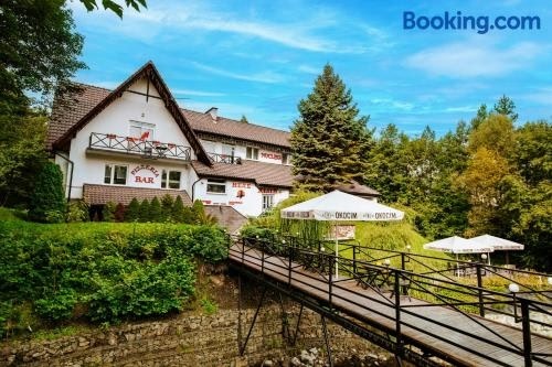 Die Unterkunft Noclegi Hexe bietet einen Garten, eine Terrasse, ein Restaurant und eine Bar in Żegocina. Die Unterkunft befindet sich etwa 15 km von Schloss Nowy Wiśnicz, 22 km von Salzbergwerk Bochnia und 39 km von Salzbergwerk Wieliczka entfernt.