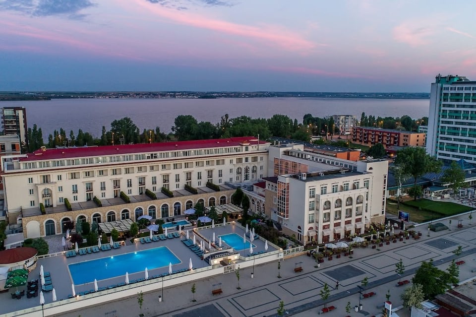 Iaki Hotel in Constanta ist nur einen 3-minütigen Fußmarsch von Strand Tomis und 11 Gehminuten von Telegondola Cazino entfernt. Dieses Hotel in Strandnähe ist 1,1 km von See Siutghiol und 2,1 km von Anlegestelle der Fähren zur Insel Ovidiu entfernt. Gönn dir einen Besuch des Wellnessbereichs, der Massagen, Körperbehandlungen und Gesichtsbehandlungen bietet. Sicher ist bei folgenden Freizeitmöglichkeiten auch für dich das Richtige dabei: Innenpool, Sauna und Fitnessmöglichkeiten. Dieses Hotel bietet auch kostenloses WLAN, ein Concierge-Service und ein Ballsaal. Dieses Hotel bietet ein Restaurant mit hervorragenden Speisen. Nutz alternativ den Zimmerservice (bitte Zeiten beachten). Entspann dich mit einem erfrischenden Getränk an der Bar/Lounge oder der Poolbar. Gegen Gebühr wird täglich von 07:30 Uhr bis 10:00 Uhr ein Frühstücksbuffet angeboten. Zum Angebot gehören ein Businesscenter, eine rund um die Uhr besetzte Rezeption und eine Gepäckaufbewahrung. Ein Flughafentransfer ist verfügbar (gegen Gebühr). Fühl dich in den 122 Zimmern, die individuell ausgestattet sind und Minibar und einen LCD-Fernseher bieten, wie zu Hause. Die Zimmer haben eigene Balkone. Ein WLAN-Internetzugang (kostenlos) ist ebenso verfügbar wie Digitalempfang. Die Badezimmer verfügen über Badewannen oder Duschen, Regenduschen und kostenlose Toilettenartikel.