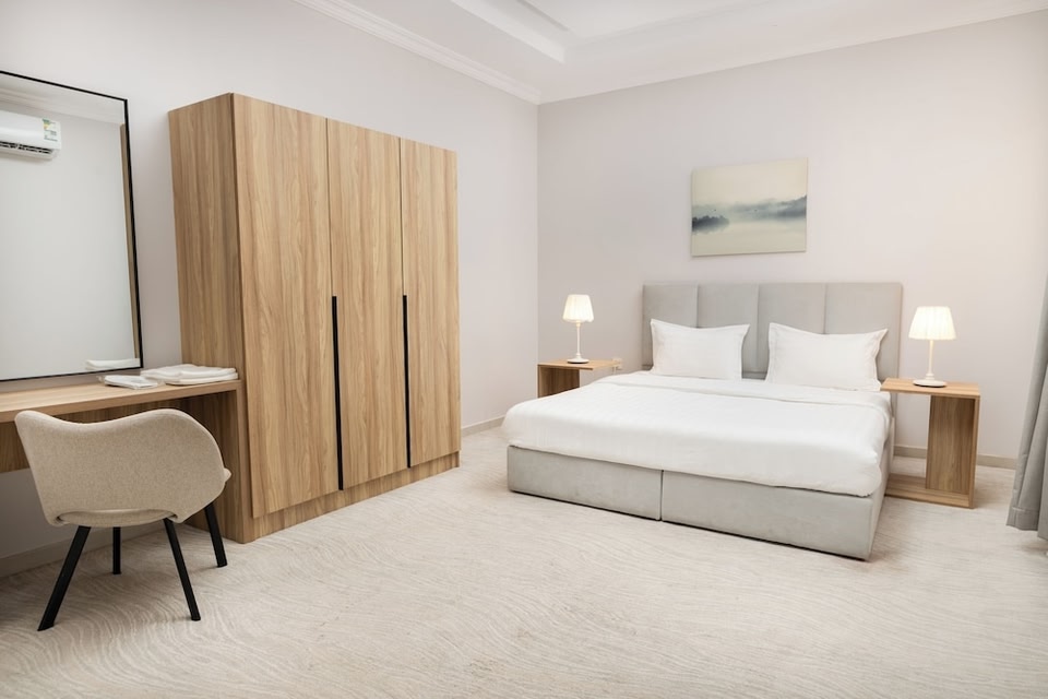 Badrani B - Qaswarah Residence besticht durch eine zentrale Lage in Medina, nur 15 Autominuten entfernt von: Prophetenmoschee und Jabal Ahad Garden Park. Dieses Aparthotel ist 8,2 km von Al-Rashid Mega Mall und 9 km von Dar-Al-Madinah-Museum entfernt. Fühl dich in einem der 5 klimatisierten Zimmer, die Kochnischen bieten, die über große Kühlschränke/Gefrierfächer und Öfen verfügen, wie zu Hause. LCD-Fernseher mit Satellitenempfang garantieren Unterhaltung und es gibt außerdem einen WLAN-Internetzugang (kostenlos). Zu den Highlights gehören Schreibtische und Mikrowellen. Entfernungen werden bis auf 0,1 Kilometer gerundet. Al-Rashid Mega Mall – 8,2 km Dar-Al-Madinah-Museum – 9 km Ghars Brunnen – 9,9 km Jabal Ahad Garden Park – 10 km König-Fahd-Zentralpark – 10,5 km Madinah Abenteuerpark – 10,6 km Madina-Kunstzentrum – 10,6 km Die Grüne Kuppel – 11,8 km Schlacht von Uhud – 12 km Al-Baqi Friedhof – 12,1 km Neuer Bilal Markt – 12,2 km Quba Mosque – 12,2 km Bilal Ibn Rabah Moschee – 12,2 km Grab von Hamza – 12,3 km Prophetenmoschee – 12,4 km Der bevorzugte Flughafen für Badrani B - Qaswarah Residence ist Flughafen Prince Mohammad Bin Abdulaziz (MED) – 16,7 km Vor Ort gibt es Folgendes: Parken ohne Service (kostenlos). Du wirst gebeten, die folgenden Gebühren direkt in der Unterkunft zu zahlen. Gebühren beinhalten möglicherweise geltende Steuern: Reinigungsgebühr: 85 SAR pro Unterkunft, pro Aufenthalt Diese Liste enthält alle Gebühren, die uns von der Unterkunft mitgeteilt wurden. Paare, die ein gemeinsames Zimmer wünschen, müssen eine Heiratsurkunde vorlegen.