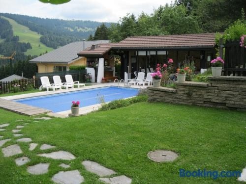Die Unterkunft Le Logis du Chalet Perce-Neige verfügt über Bergblick und Übernachtungsmöglichkeiten mit einem Balkon und einer Kaffeemaschine, ungefähr 18 km von Bahnhof Montreux entfernt. Diese Unterkunft mit Gartenblick bietet eine Veranda / Patio.