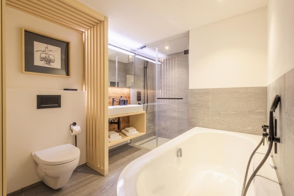 Die Unterkunft Frutt Living hat eine Gemeinschaftslounge, eine Terrasse, ein Restaurant und eine Bar in Kerns.