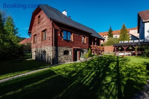 Die Unterkunft Chalupa Zubrik Telgárt besticht durch Gartenblick und Übernachtungsmöglichkeiten mit einem Balkon und einer Kaffeemaschine, ungefähr 12 km von Eishöhle Dobsinska entfernt.