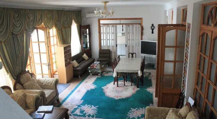 Almaz Guest House in Duschanbe ist nur 10 Gehminuten von Nationalmuseum Tadschikistan und Bekhzod Nationalmuseum entfernt. Diese Pension ist 1,1 km von Siegespark und 1,4 km von Oper von Duschanbe entfernt. Nutz folgende Freizeiteinrichtung: Innenpool. Du kannst aber auch den schönen Ausblick von folgenden Punkten genießen: Terrasse und Garten. Entspann dich mit einem erfrischenden Getränk an einer der 5 Bars/Lounges. Ein inbegriffenes einheimisches Frühstück wird täglich von 09:00 Uhr bis 10:00 Uhr angeboten. Vor Ort gibt es Folgendes: Parken ohne Service (kostenlos). Fühl dich in einem der 15 klimatisierten Zimmer mit Flachbildfernseher wie zu Hause. Ein WLAN-Internetzugang (kostenlos) steht zur Verfügung. Badezimmer mit Badewannen oder Duschen sind vorhanden. Zu den Highlights gehören Schreibtische und die Zimmer werden täglich sauber gemacht.