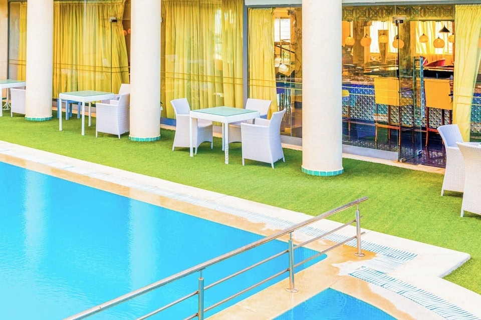 César Palace Sousse liegt im Herzen von Sousse, 5 Minuten Fahrt entfernt von: Boujaffar-Strand und Kulturzentrum von Hammam-Sousse. Dieses Hotel in Strandnähe ist 3,4 km von Große Moschee und 3,9 km von Sousse Corniche entfernt. Geh ans Meer und gönn dir einen erholsamen Nachmittag am Privatstrand oder profitiere von anderen Freizeiteinrichtungen wie: Außenpool (je nach Saison geöffnet). Besuche die Strandbar oder eine der 2 Bars/Lounges und gönn dir ein erfrischendes Getränk. Gegen Gebühr wird täglich von 07:00 Uhr bis 10:00 Uhr ein Frühstücksbuffet angeboten. Vor Ort gibt es Folgendes: Parkservice (kostenlos). Fühl dich in einem der 99 klimatisierten Zimmer wie zu Hause. Ein WLAN-Internetzugang (kostenlos) ist ebenso verfügbar wie Kabelempfang. Zu den Highlights gehören Safes und die Zimmer werden nur am Wochenende sauber gemacht.