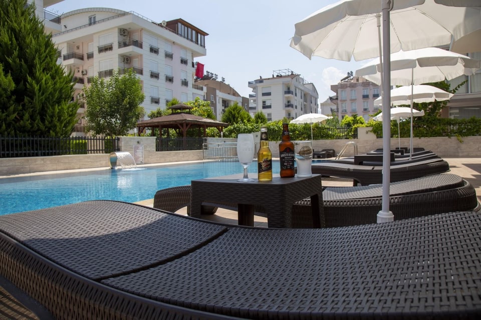 Golden World Suite Hotel in Konyaaltı ist nur 15 Autominuten von Akdeniz Üniversitesi und Alter Basar entfernt. Dieses Aparthotel für Familien ist 12,2 km von Uhrturm und 12,8 km von Hadrianstor entfernt. Entspann dich im Wellnessbereich, der Massagen bietet. Zu den Highlights, die dieses Aparthotel im mediterranen Stil bietet, gehören auch kostenloses WLAN und ein Concierge-Service. Lass deinen Tag bei einem Drink an der Bar/Lounge ausklingen. Zum Angebot gehören ein Express-Check-in, ein Express-Check-out und kostenlose Zeitungen in der Lobby. Du kannst von dem kostenpflichtigen Flughafentransfer profitieren und findest vor Ort außerdem Folgendes vor: Parken ohne Service (kostenlos). Fühl dich wie zu Hause in den klimatisierten Zimmern, die Küchen bieten, die über große Kühlschränke/Gefrierfächer und Herdplatte verfügen. Die Zimmer haben eigene Balkone. LCD-Fernseher mit Satellitenempfang garantieren Unterhaltung und es gibt außerdem einen WLAN-Internetzugang (kostenlos). Zur Austattung gehören Telefone ebenso wie Safes und Schreibtische. License number: 2022-7-0247