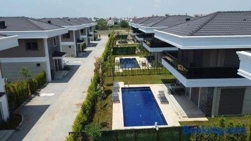 Gelegen in Belek, in der Region Türkei Mittelmeerregion, hat die Unterkunft Nirvana Belek Villas einen Balkon und Poolblick. Diese Villa bietet einen eigenen Pool, einen Garten, einen Grill, kostenloses WLAN und einen kostenlosen Privatparkplatz. License number: 07-131
