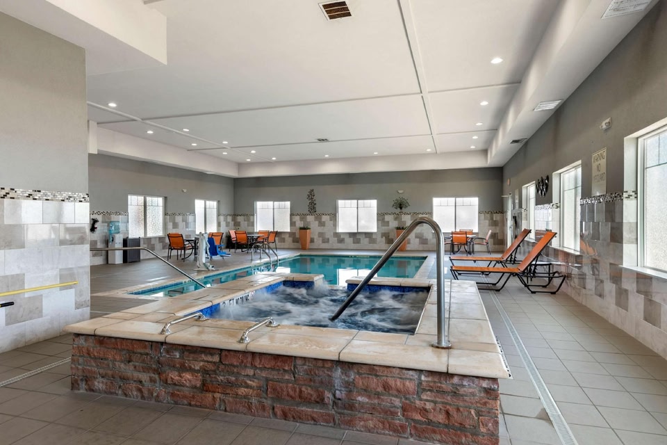 Best Western Plus Fort Stockton Hotel liegt im Herzen von Fort Stockton, 5 Minuten Fahrt entfernt von: Fort Stockton Besucherzentrum und Paisano Pete. Dieses Hotel ist 4,6 km von Annie Riggs Museum und 4,8 km von James Rooney Memorial Park entfernt. Zahlreiche Freizeiteinrichtungen (z. B. Innenpool und Fitnessmöglichkeiten) lassen keine Langeweile aufkommen. Zu den Highlights gehören auch kostenloses WLAN und ein Souvenirladen/Kiosk. Deinen Durst kannst du an der Bar/Lounge stillen. Ein Frühstücksbuffet ist im Preis inbegriffen. Zum Angebot gehören ein kostenloser Internetzugang per Kabel, ein rund um die Uhr geöffnetes Businesscenter und kostenlose Zeitungen in der Lobby. Vor Ort gibt es Folgendes: Parken ohne Service (kostenlos). Fühl dich in einem der 75 klimatisierten Zimmer mit Mikrowelle und LED-Fernseher wie zu Hause. In deinem Zimmer findest du ein Pillowtop-Bett mit hochwertige Bettwaren vor. Es gibt einen kostenfreien Internetzugang per Kabel und WLAN sowie Satellitenempfang. Es gibt eigene Badezimmer, die über kostenlose Toilettenartikel und Haartrockner verfügen.