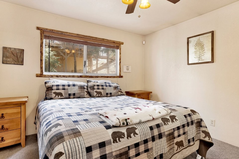 Dieses Ferienhaus in Big Bear City (Moonridge) ist nur 10 Minuten Fahrt entfernt von: Snow Summit und The Village. Dieses Ferienhaus mit Golfplatz ist 2,1 km von Big Bear Mountain Resort und 2,3 km von Gold Mine Golf Course entfernt. Kostenloses WLAN und Grillmöglichkeiten gehören zur Austattung. Vor Ort gibt es Folgendes: begrenzte Parkplätze. Dieses Ferienhaus mit individueller Ausstattung, zu der ein Kamin gehört, verspricht dir einen fantastischen Aufenthalt. Freu dich in deinem Privatbereich auf einen Balkon oder Patio. Vor Ort findest du jeglichen Komfort, darunter einen Wasserkocher mit Kaffee-/Teezubehör und eine Waschmaschine mit Trockner.