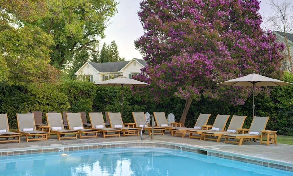 MacArthur Place Hotel & Spa in Sonoma liegt im historischen Viertel, 15 Minuten Fahrt von Sonoma Plaza und Sonoma Raceway (Rennstrecke) entfernt. Dieses Hotel mit Wellnessangebot ist 23 km von Napa Valley Wine Train und 0,4 km von Sonoma State Historic Park entfernt. Entspann dich im Wellnessbereich, der Massagen, Körperbehandlungen und Gesichtsbehandlungen bietet. Sicher ist bei folgenden Freizeitmöglichkeiten auch für dich das Richtige dabei: Außenpool, Whirlpool und Dampfbad. Zu den Highlights, die dieses Hotel bietet, gehören zudem kostenloses WLAN, ein Concierge-Service und ein Souvenirladen/Kiosk. Genieße mediterrane Küche im Layla, einem ein Restaurant, das eine Bar/Lounge und Blick auf den Garten bietet. Oder bleib bequem auf deinem Zimmer und nutz den Zimmerservice (bitte Zeiten beachten). Deinen Durst kannst du an der Poolbar stillen. Gegen Gebühr wird täglich von 07:00 Uhr bis 10:00 Uhr ein großes Frühstück angeboten. Zum Angebot gehören ein PC-Arbeitsplatz, kostenlose Zeitungen in der Lobby und ein Textilreinigungsservice. Wenn du eine Veranstaltung in Sonoma planst, ist dieses Hotel eine gute Wahl, denn zu den 6500 Quadratfuß (604 Quadratmeter) großen Veranstaltungsräumlichkeiten zählen ein Konferenzzentrum und 7 Tagungsräume. Vor Ort gibt es Folgendes: Parkservice (kostenlos). Gönn dir einen Aufenthalt in einem der 64 Zimmer, die individuell ausgestattet sind und über Fußbodenheizung verfügen. Dein Pillowtop Bett bietet Daunenbettdecken und hochwertige Bettwaren. Kabelempfang und iPod-Dockingstationen stehen ebenso zur Verfügung wie ein WLAN-Internetzugang (kostenlos). Zur Austattung gehören Safes in Laptop-Größe und Minibars sowie Telefone, mit denen du kostenlose Ortsgespräche führen kannst.