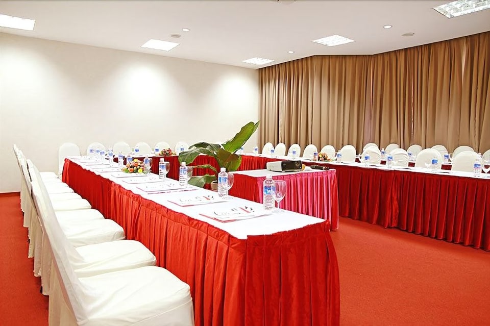 Dakruco Hotel in Ban Me Thuot ist eine 5-minütige Fahrt von Stadtpark von Buôn Ma Thuột und Siegessäule entfernt. Dieses Hotel ist 2,7 km von Welt des Kaffeemuseums und 3,1 km von Ako Dhong Dorf entfernt. Nutz folgende Freizeiteinrichtung: Außenpool. Du kannst aber auch den schönen Ausblick von folgenden Punkten genießen: Terrasse und Garten. Kostenloses WLAN, ein Hochzeitsservice und Unterstützung bei der Tourenplanung/beim Ticketerwerb stehen ebenfalls zur Verfügung. Gönn dir einen Happen zu essen im ein Restaurant dieses Hotels, das eine Bar/Lounge bietet, oder bleib bequem auf deinem Zimmer und nutz den Zimmerservice (bitte Zeiten beachten). Ein inbegriffenes Frühstücksbuffet wird täglich von 06:30 Uhr bis 09:00 Uhr angeboten. Zum Angebot gehören ein Businesscenter, ein Textilreinigungsservice und eine rund um die Uhr besetzte Rezeption. Für Veranstaltungen stehen folgende Einrichtungen zur Verfügung: ein Konferenzzentrum und Tagungsräume. Der Flughafentransfer (rund um die Uhr) ist kostenpflichtig; außerdem gibt es vor Ort Folgendes: Parken ohne Service (kostenlos). Fühl dich in einem der 145 klimatisierten Zimmer mit Minibar und LCD-Fernseher wie zu Hause. Ein WLAN-Internetzugang (kostenlos) ist ebenso verfügbar wie Kabelempfang. Es sind eigene Badezimmer mit Duschen vorhanden, die über kostenlose Toilettenartikel und Haartrockner verfügen. Zur Austattung gehören Telefone ebenso wie Safes und Schreibtische.
