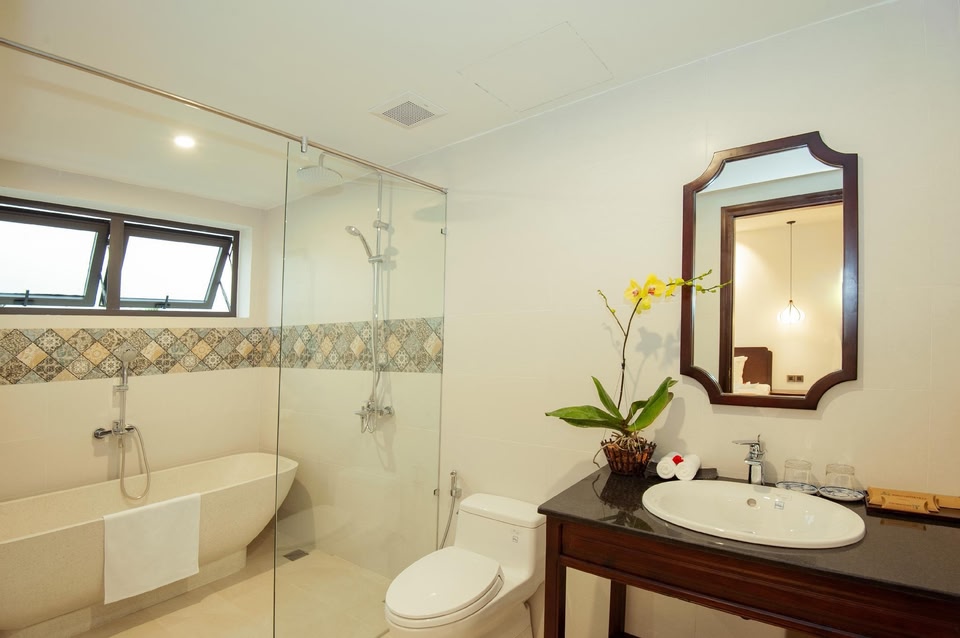 Roxana River Villa in Hoi An (Cẩm Châu) ist eine 3-minütige Fahrt von Markt von Hội An und 6 Autominuten von Nachtmarkt von Hội An entfernt. Dieses Hotel ist 21,6 km von Strand My Khe und 6 km von Strand An Bang entfernt. Zahlreiche Freizeiteinrichtungen (z. B. Innenpool und Whirlpool) lassen keine Langeweile aufkommen. Auch kostenloses WLAN und Unterstützung bei der Tourenplanung/beim Ticketerwerb bietet dieses Hotel. Genieße Mittagessen oder Abendessen bei einem Restaurant dieses Hotels. Oder bleib gemütlich auf deinem Zimmer und nutz den Zimmerservice. Entspann dich mit einem erfrischenden Getränk an der Bar/Lounge oder der Poolbar. Ein inbegriffenes nach Wunsch zubereitetes Frühstück wird täglich von 07:00 Uhr bis 10:00 Uhr angeboten. Zum Angebot gehören ein PC-Arbeitsplatz, ein Textilreinigungsservice und eine rund um die Uhr besetzte Rezeption. Du kannst von dem kostenpflichtigen Flughafentransfer profitieren und findest vor Ort außerdem Folgendes vor: Parken ohne Service (kostenlos). Fühl dich in einem der 18 klimatisierten Zimmer mit Kühlschrank und Smart-TV wie zu Hause. In deinem Zimmer findest du ein Pillowtop-Bett mit hochwertige Bettwaren vor. Ein WLAN-Internetzugang (kostenlos) ist ebenso verfügbar wie Digitalempfang. Die Badezimmer verfügen über Badewannen und Duschen (separat), Regenduschen und kostenlose Toilettenartikel.