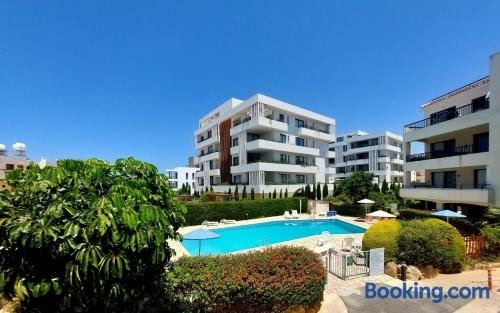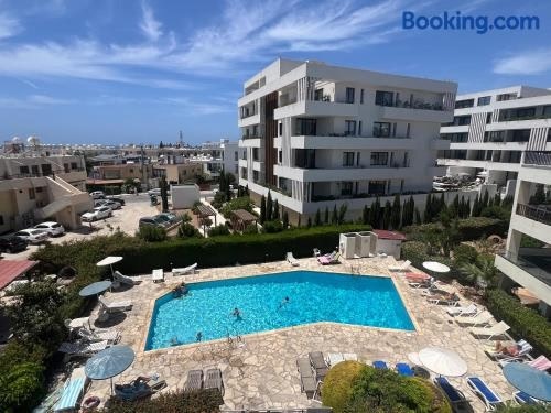 Gelegen in Paphos bietet die Unterkunft 1st Floor 1st Class Pool View Apt. Übernachtungsmöglichkeiten mit einem eigenen Pool, einem Balkon und Poolblick.